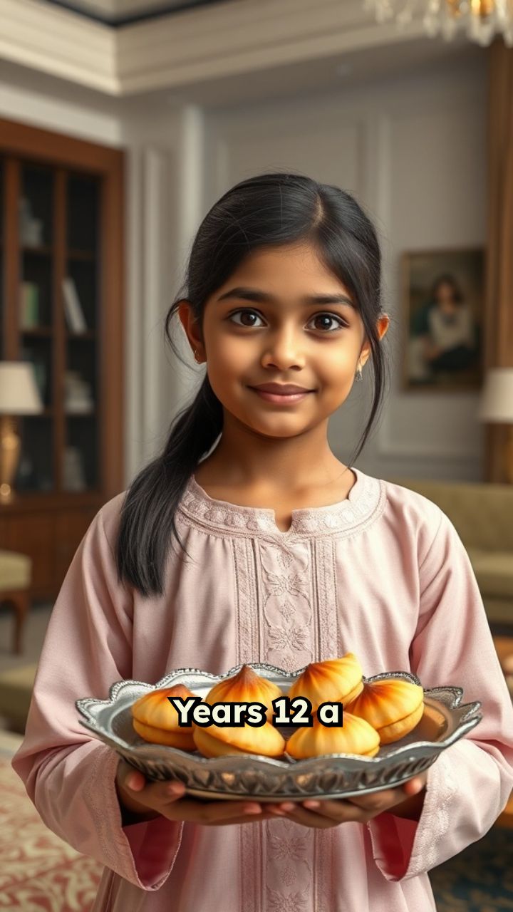 old beutifull Girl Offering Smosa sweets in a small tray to her