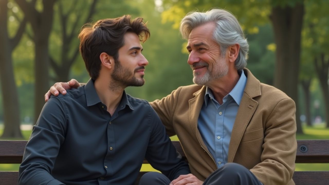 парке. Недалеко текла толпа. Светило солнце, было жарко. И он спросил