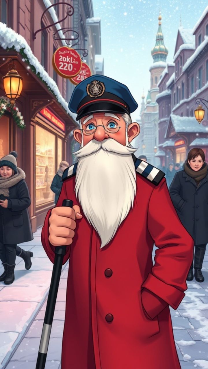 Дед Мороз-милиционер поздравляет прохожих