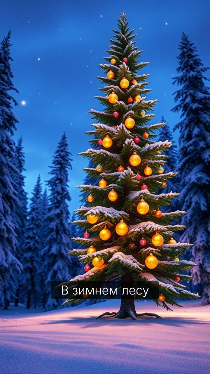Дед Мороз у ёлки в лесу