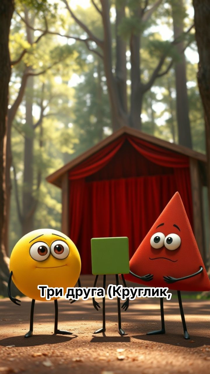 Три друга (Круглик, Квадратик и Треугольник) гуляют по лесной поляне и находят