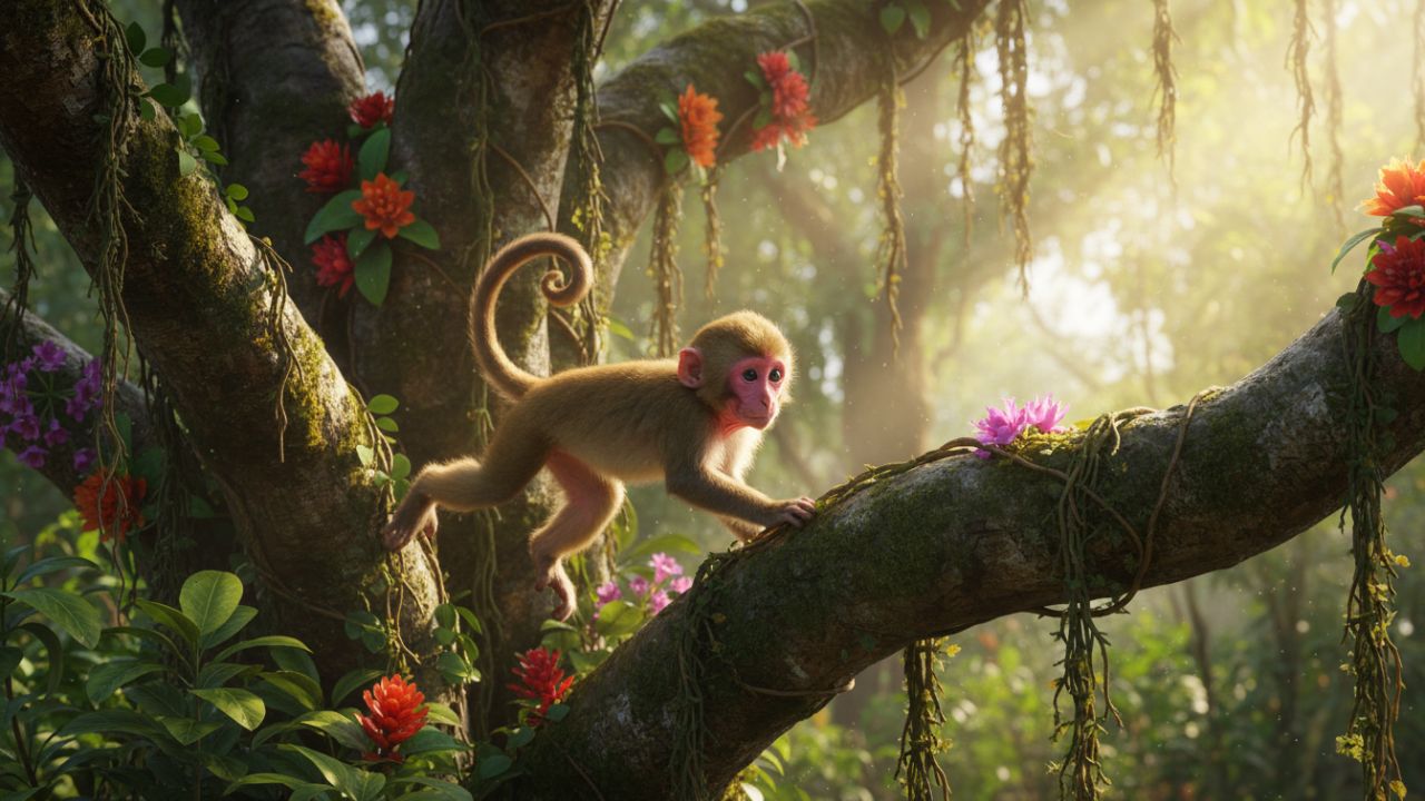 लेकिन असर बहुत गहरा था। अब बंदर की चंचलता सिर्फ खेल नहीं रही थी। वह बेचैनी बन गई। वह और तेज दौड़ने
