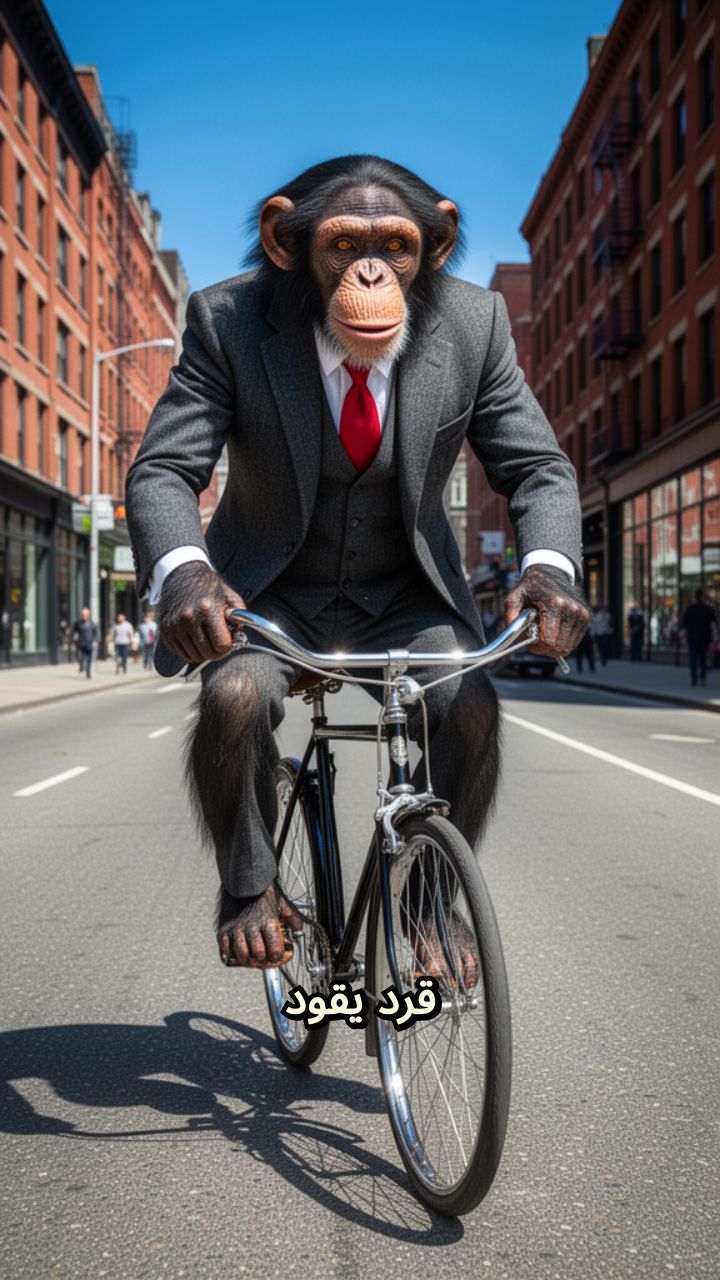 قرد أنيق يقود دراجة في الشارع