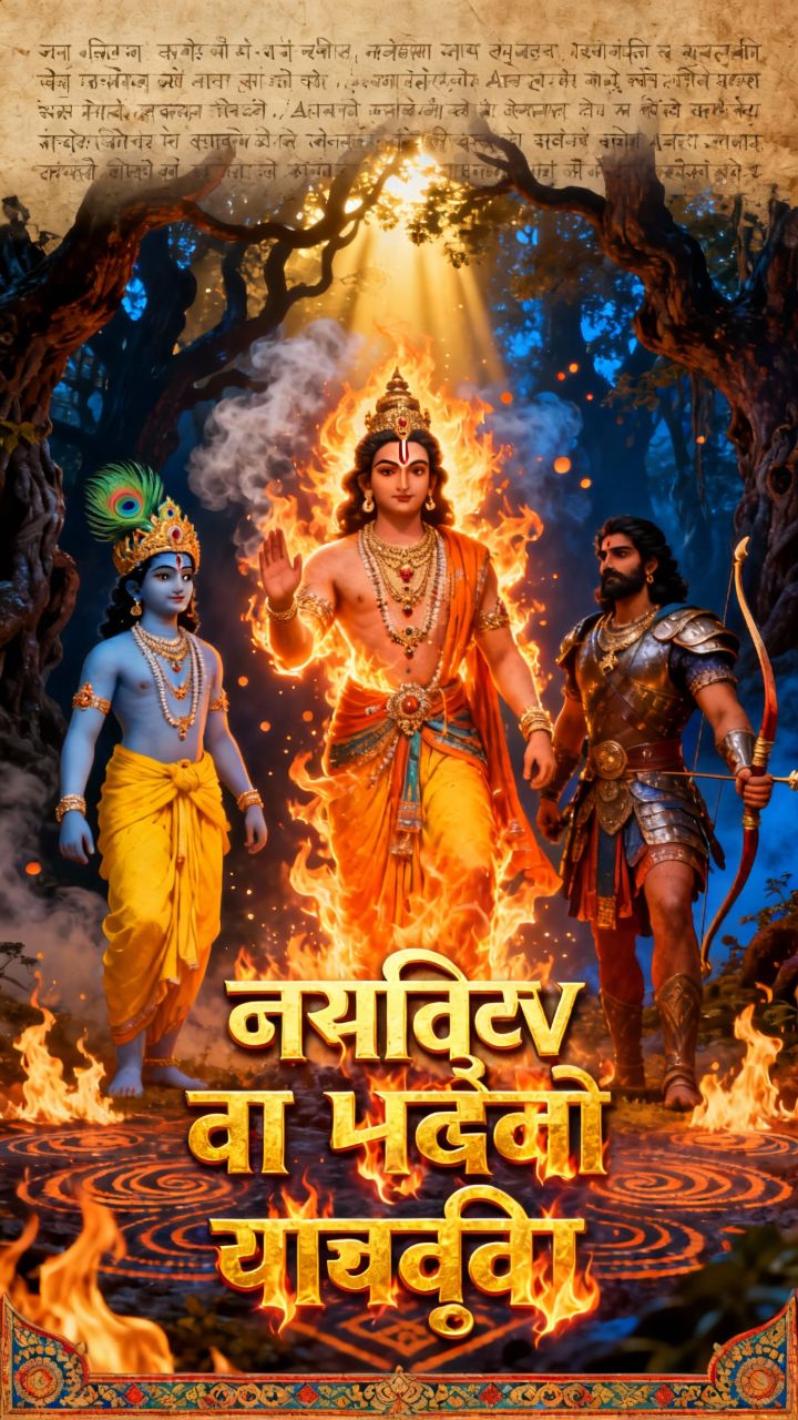 कृष्ण और अर्जुन खंडव वन की सीमा के पास