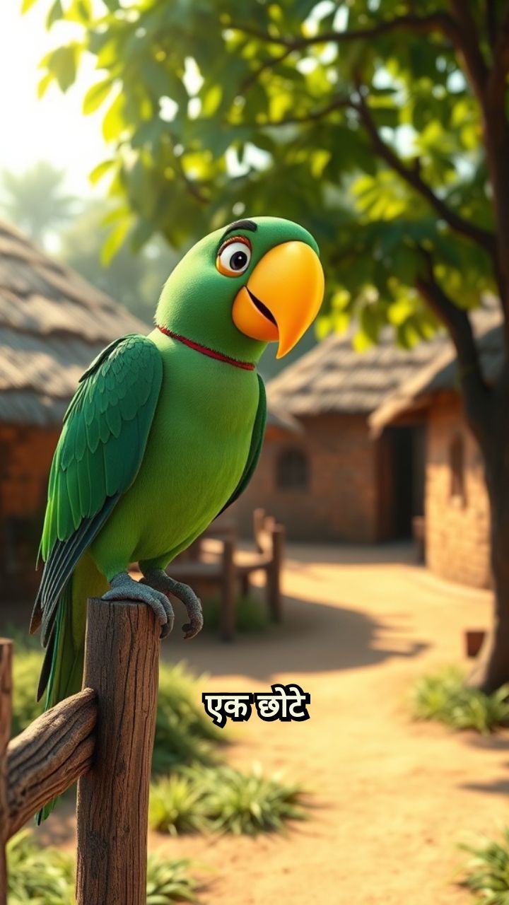 एक छोटे से गाँव में एक हरा-भरा तोता रहता