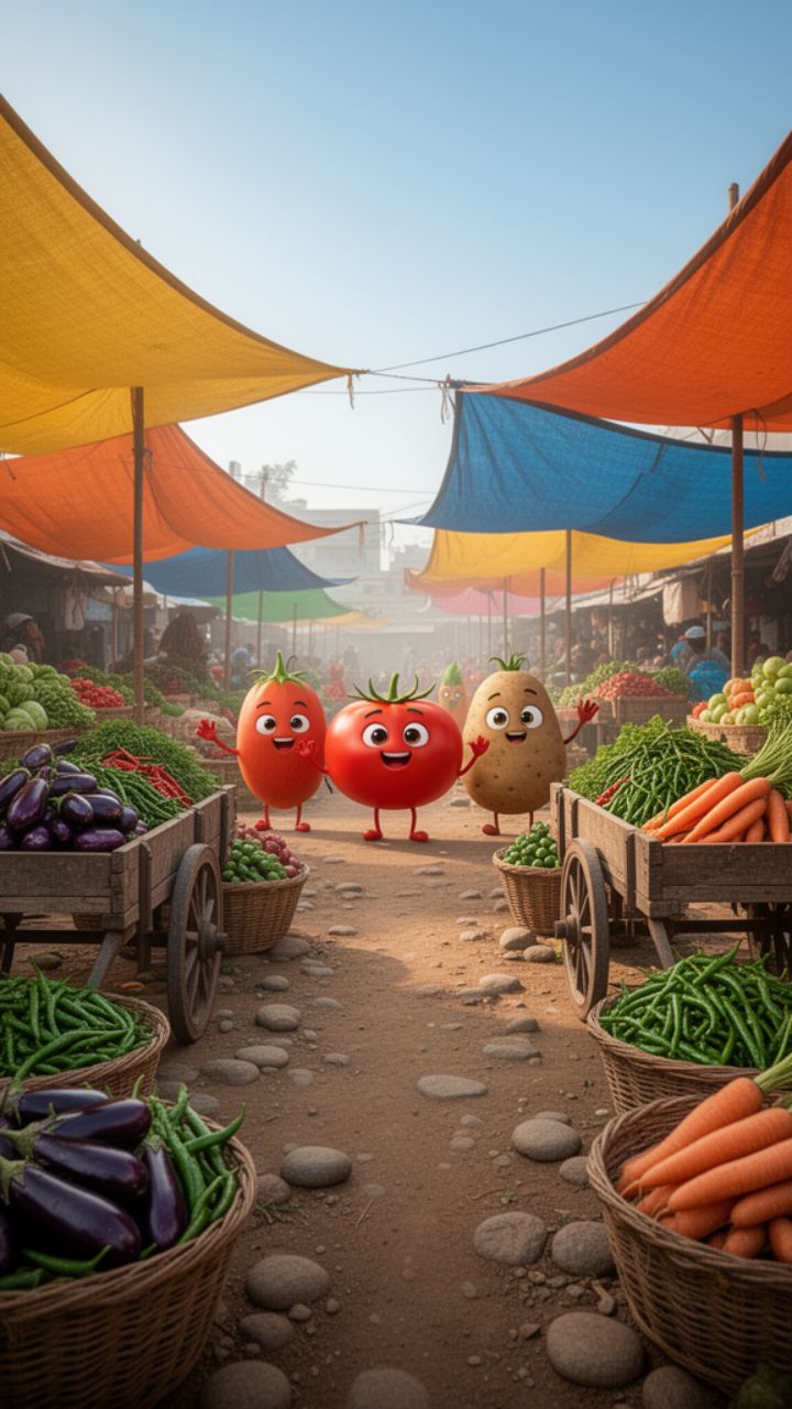 आओ बच्चों मंडी चले, सब्जियां नाचें, ढोल बजे। रंग बिरंगी स्वादभरी