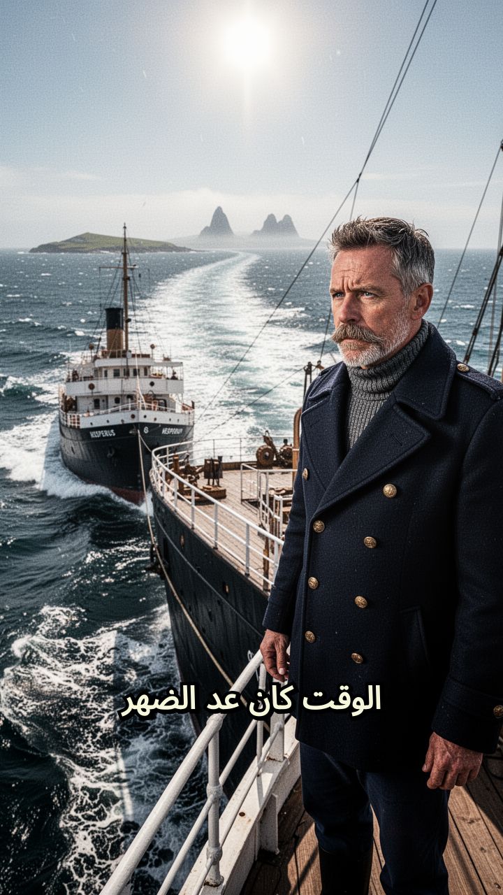 الوقت كان عد الضهر تقريبا. لما سفينة الإمداد هيسبيروس كانت بدأت تقرب من جزر فلانن.