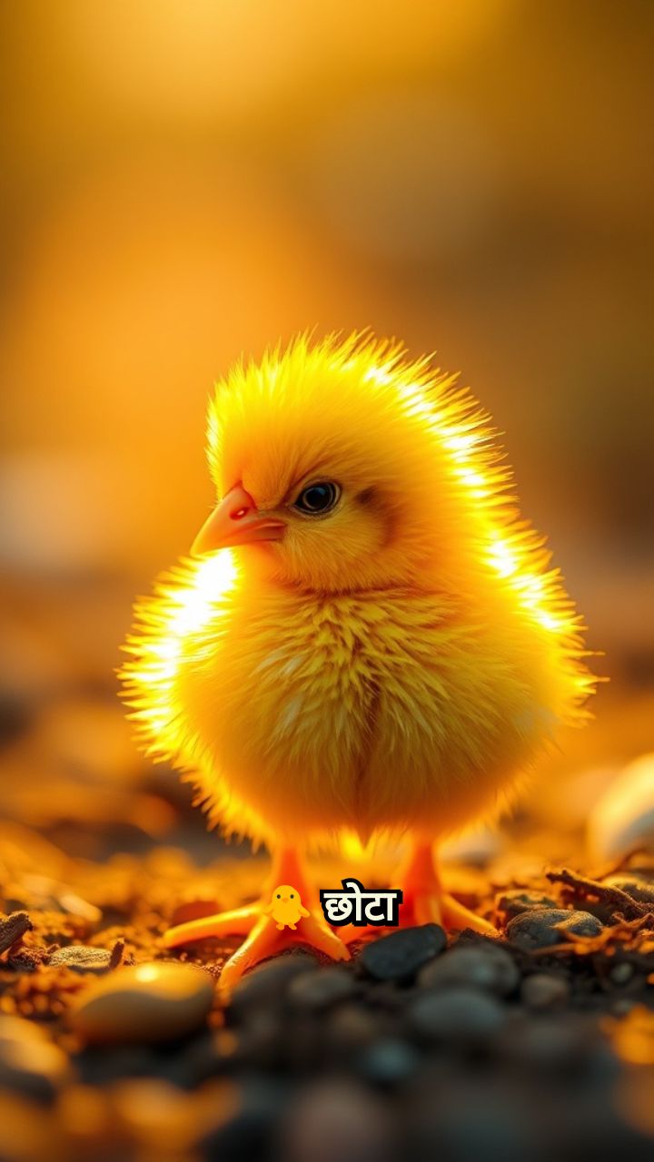 एक छोटा चूज़ा सुबह-सुबह बाहर निकला। उसने देखा कि एक चमकती