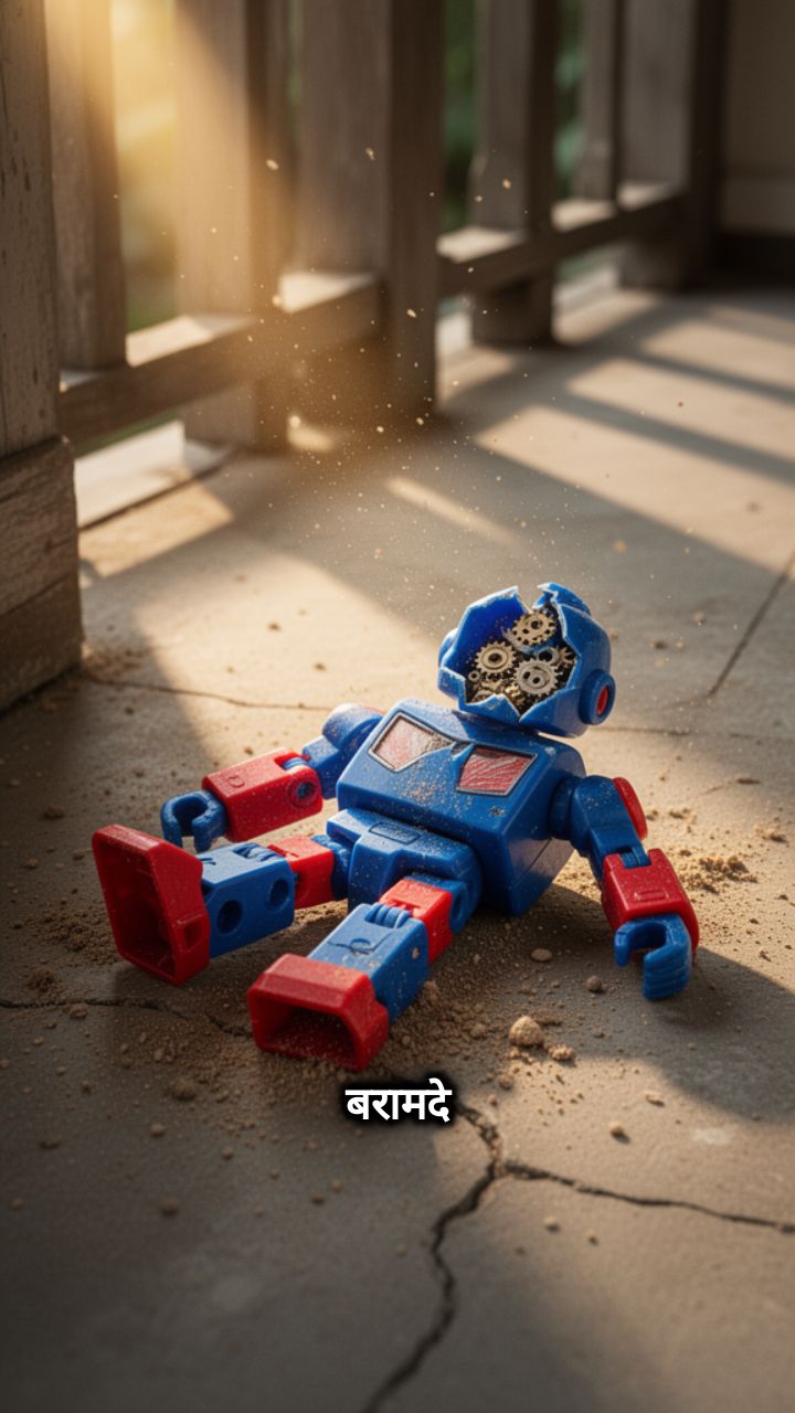 बरामदे के कोने में पड़ा टूटा हुआ खिलौना