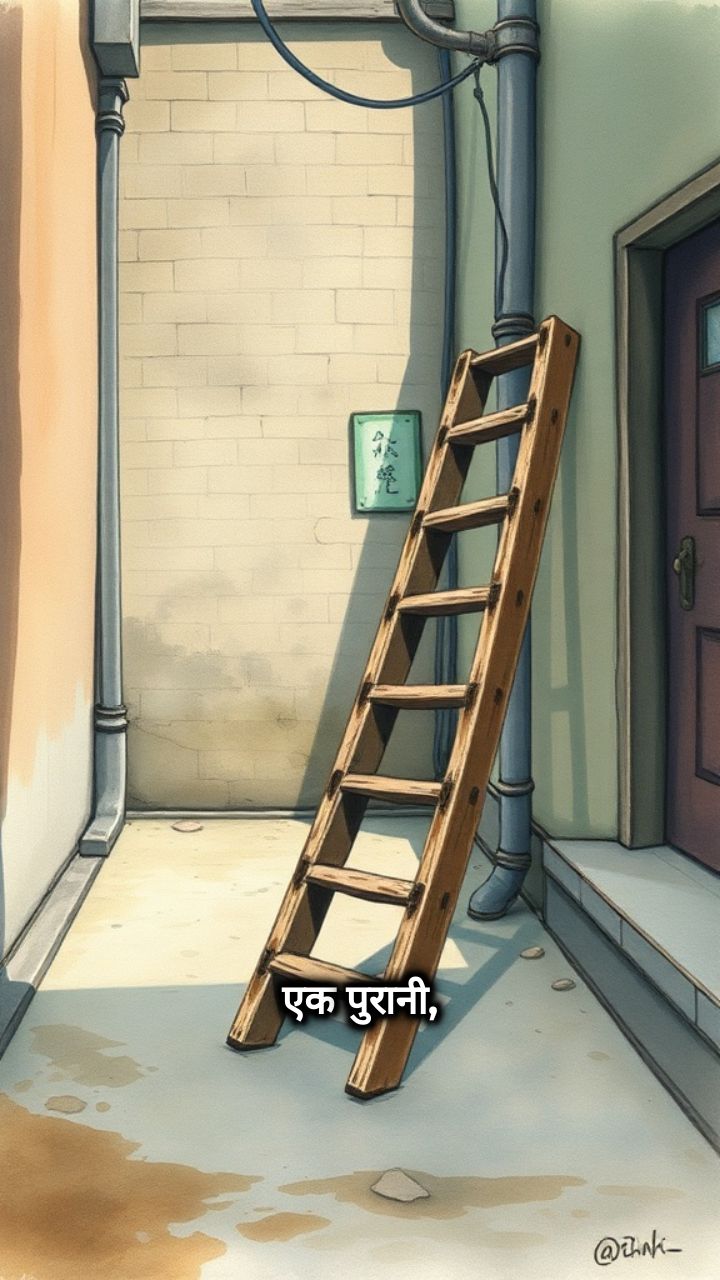 एक पुरानी, टेढ़ी-मेढ़ी सीढ़ी थी । वह सीधी