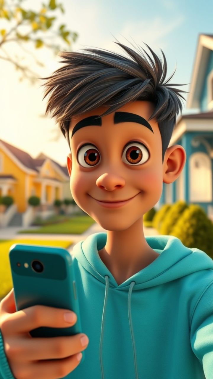 into a new location and ends by taking a selfie