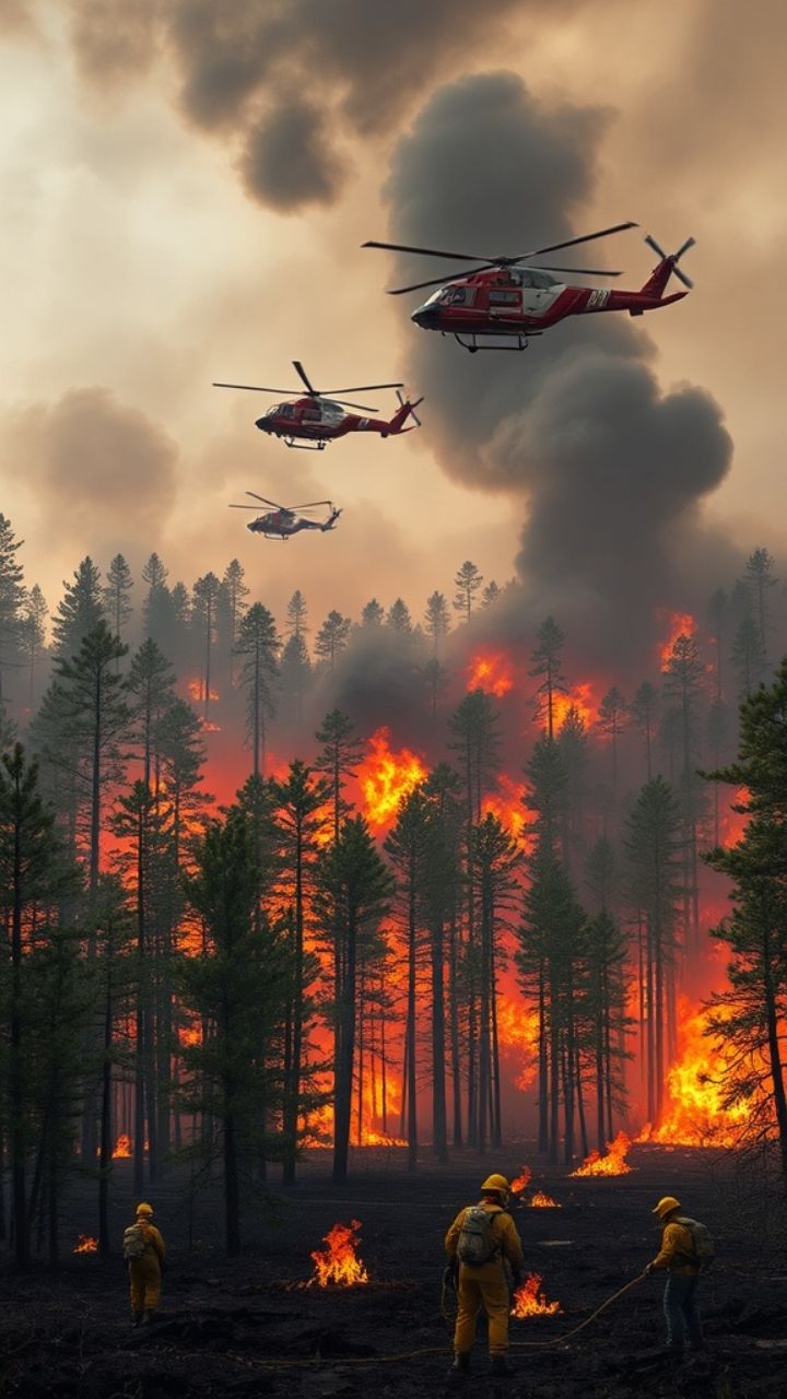 भी बेकाबू है। आसमान में धुआं ही धुआं है, हेलीकॉप्टर पानी गिरा रहे हैं,