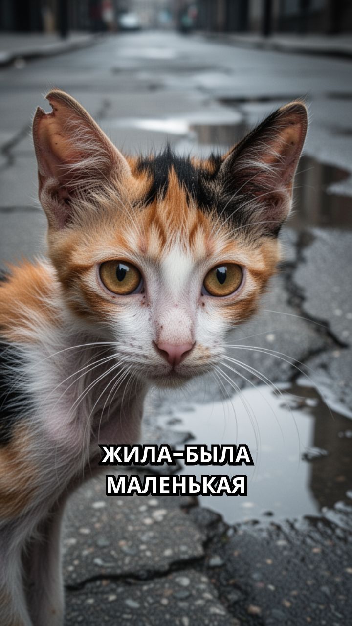 Жила-была маленькая кошка. Её дом был холодным, а еды почти не было.