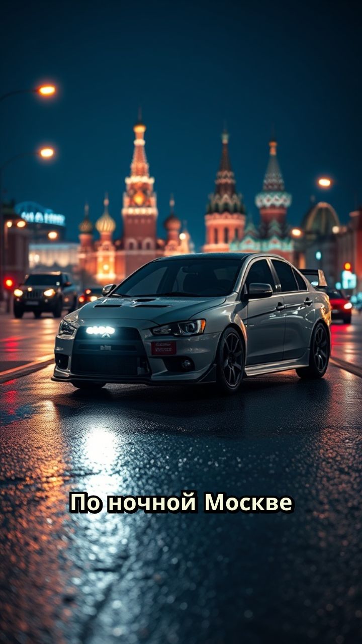 По ночной Москве едет мутсубиси Лансер 10