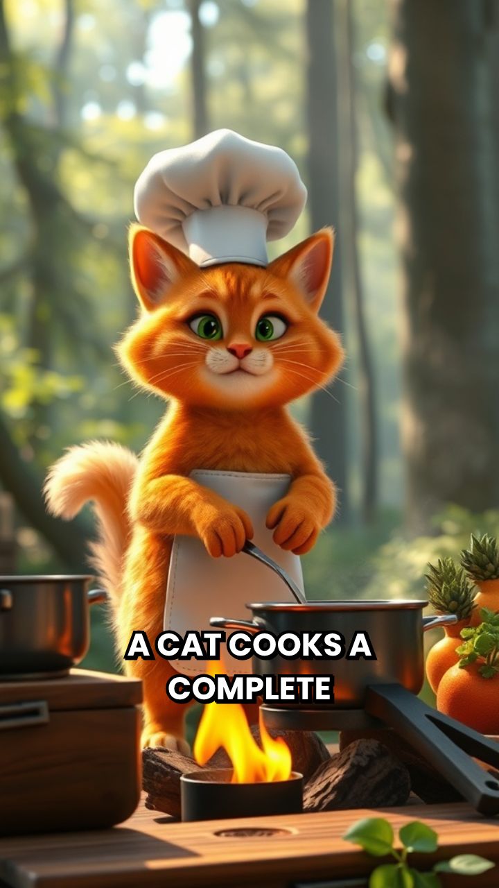 A cat cooks a complete meal in nature 30 second