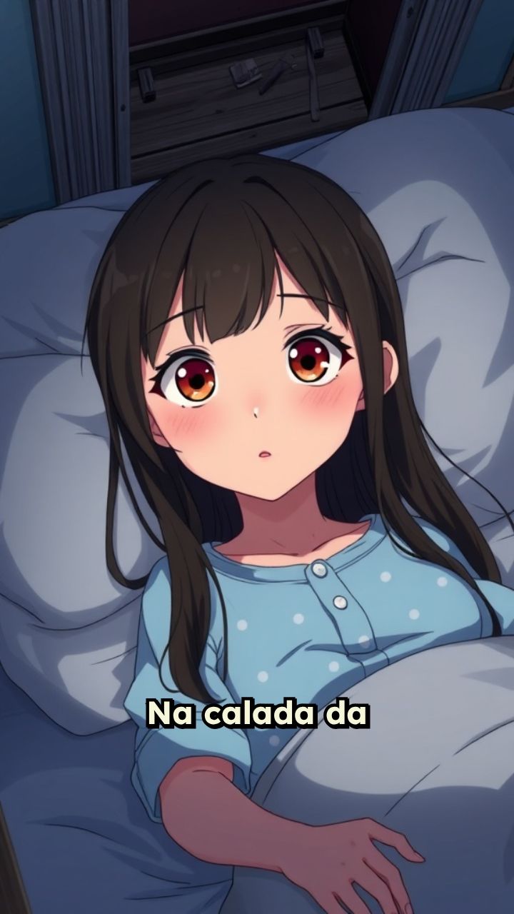 Na calada da madrugada, passos no sótão acordaram Lia, curiosa.