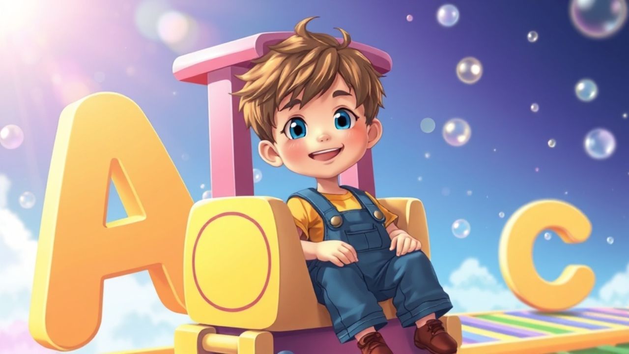 Letters dancing one by one. Learning's easy, full of fun. A is for apple,