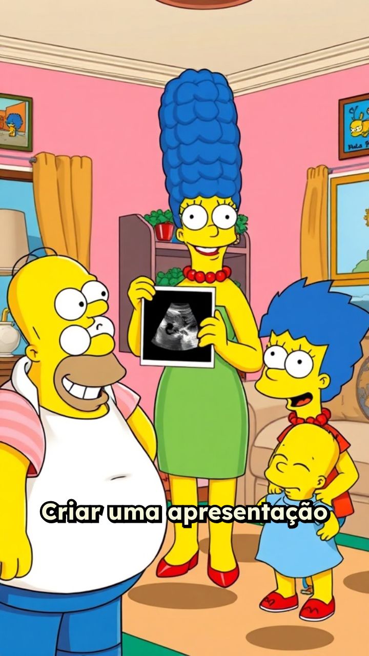 Criar uma apresentação com a família simpsons revelando a gravidez para a família com o nome Aline e josilei