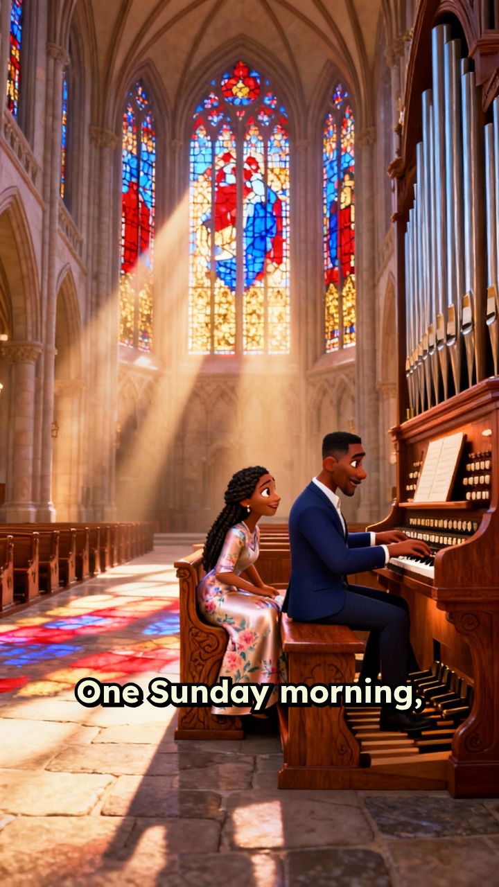 One Sunday morning, she noticed him playing the organ at church. She leaned over