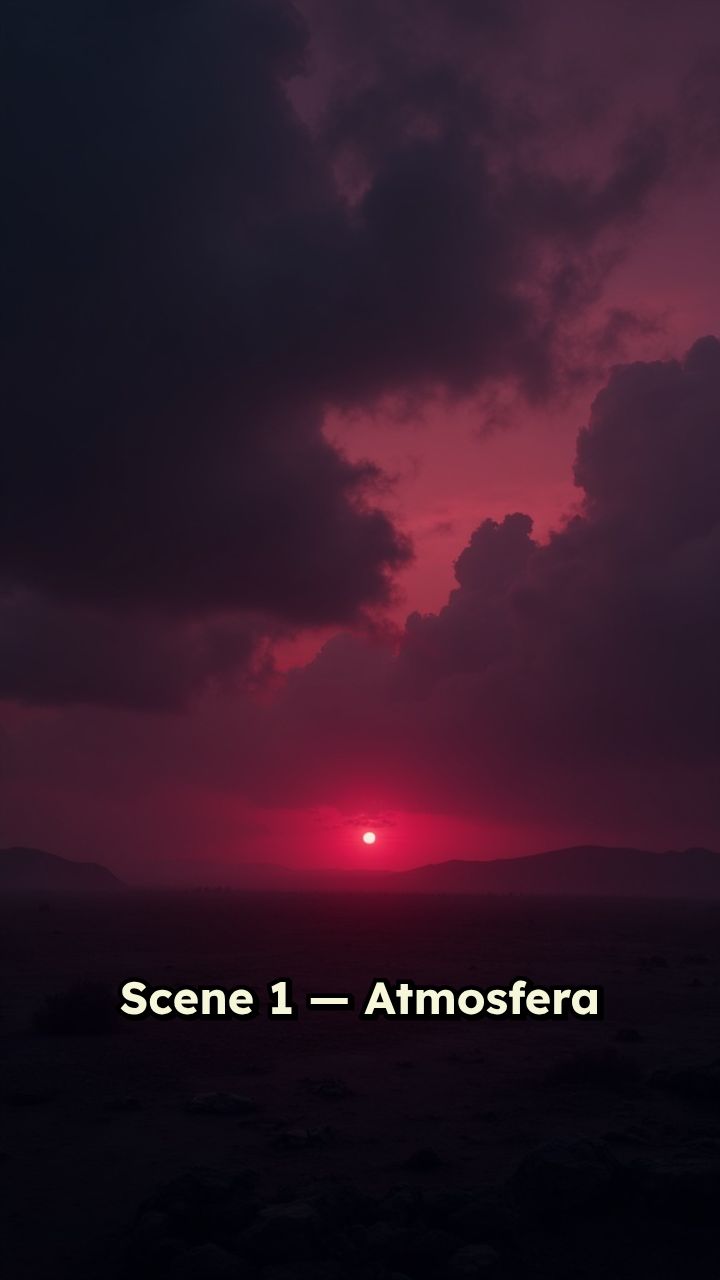 Scene 1 — Atmosfera de abertura (2s) Close em nuvens vermelhas turbulentas no céu,