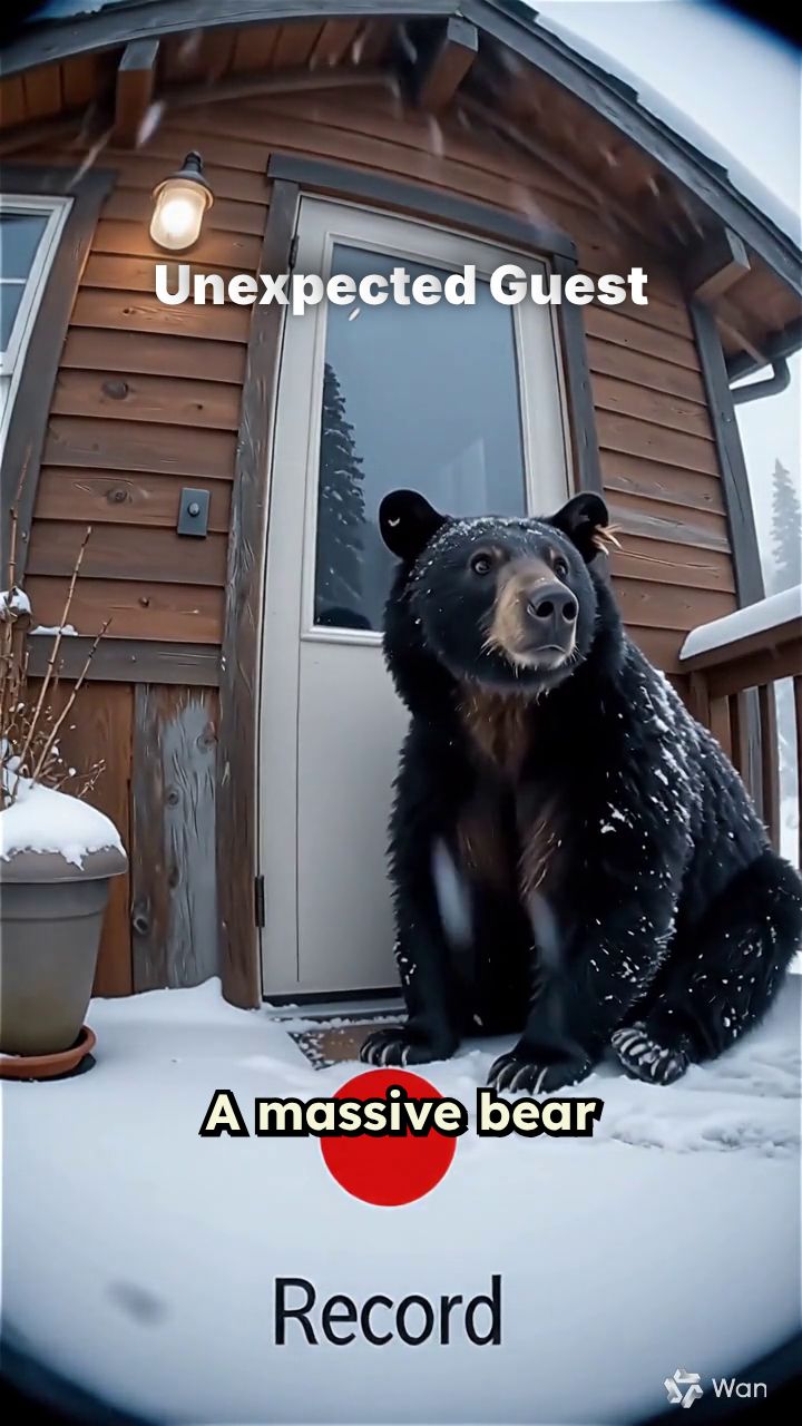 A massive bear approaches. He pauses to see who's inside. Deciding nobody is