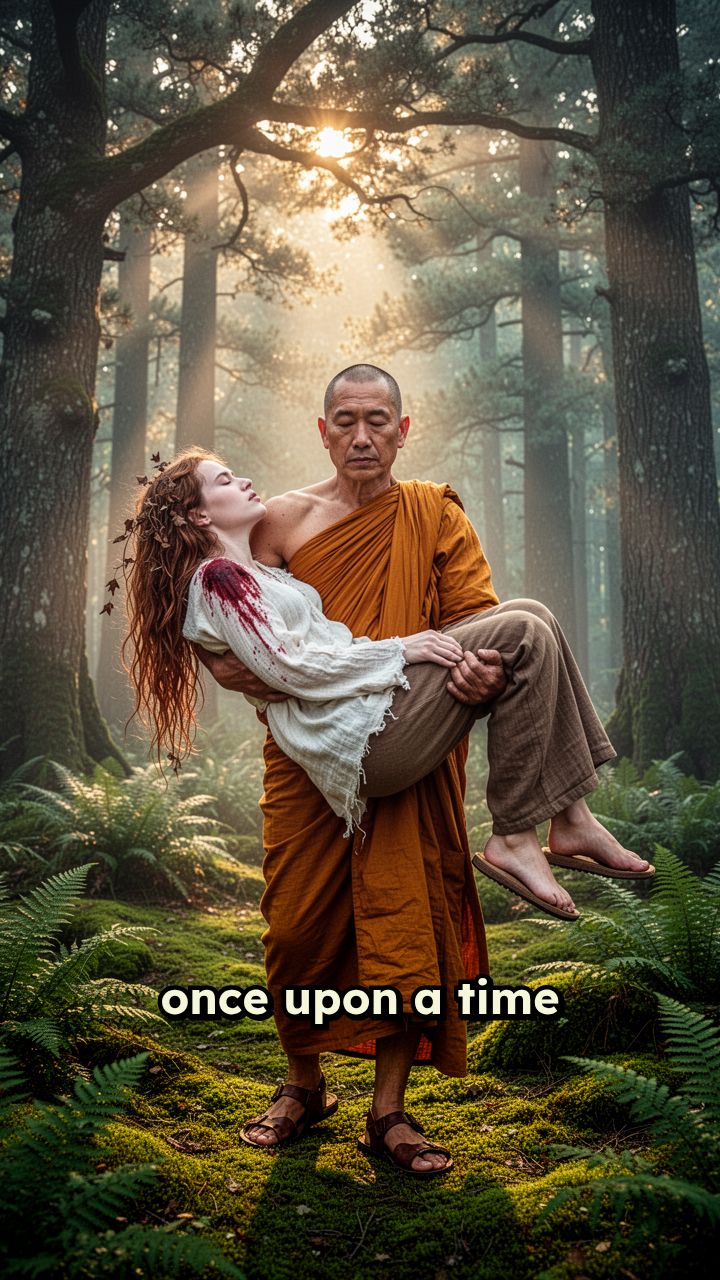 once upon a time ina forest a mont is carrying a wounded woamn, breathing heavily