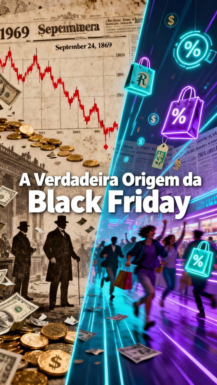 Desvende a sombria e real origem da Black Friday! De um colapso financeiro de 1869 a um evento bilionário. A história que você não conhece.