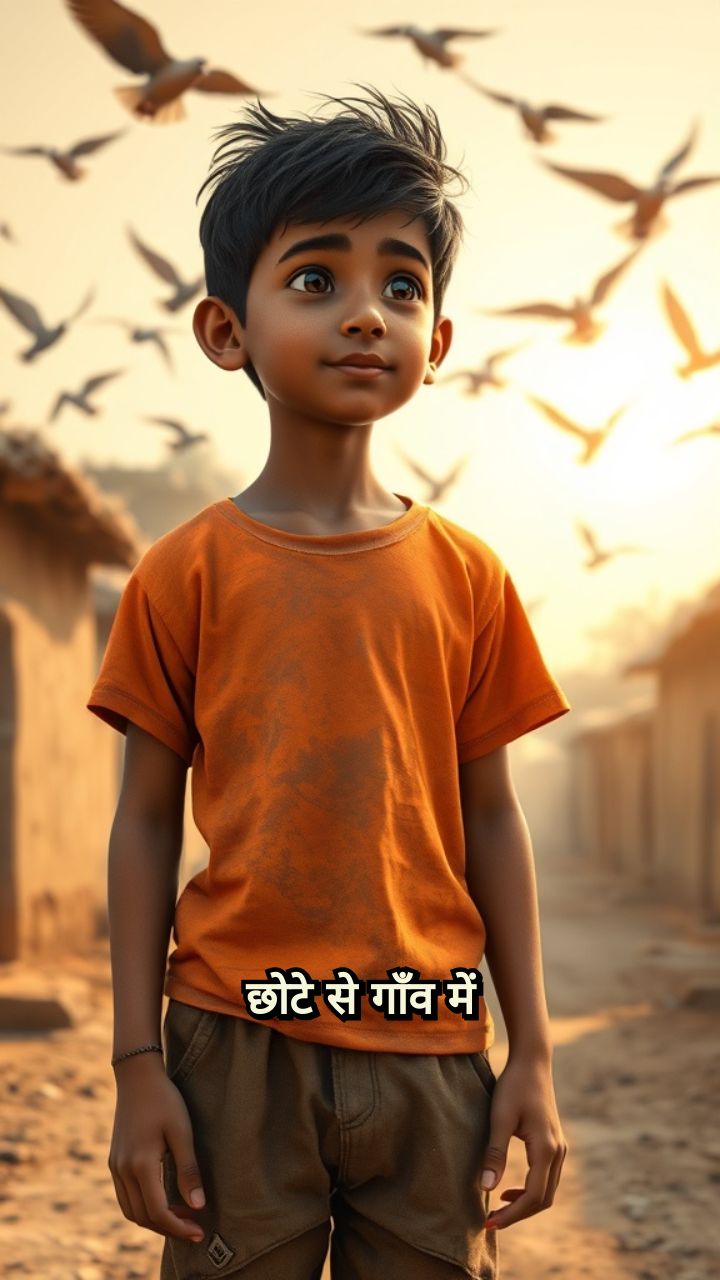 छोटे से गाँव में आरव नाम का लड़का रहता था। उसे उड़ते पंछी बहुत पसंद थे, पर उसके पास पतंग