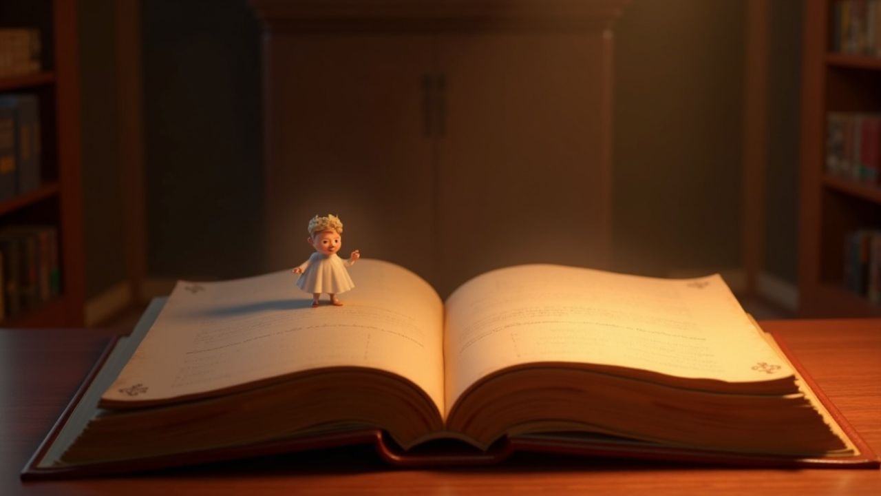 En un libro de cuentos en una mesa grande aparece en la historia Jason, príncipe de traje