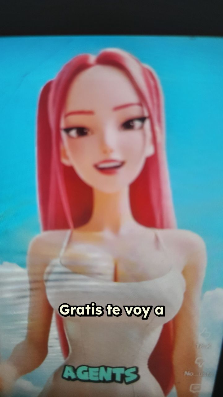 que crees. Mira esta imagen. Un personaje de cabello rosa en una pantalla,