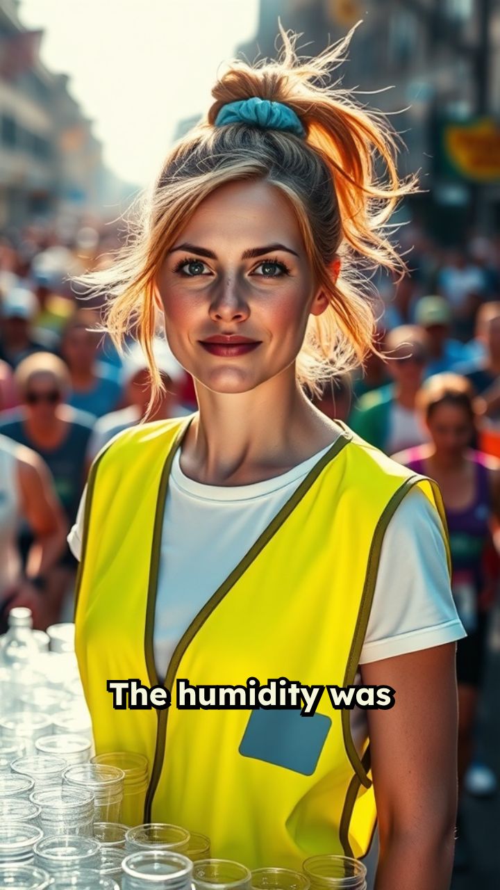 the marathon water station. Suddenly, a runner skidded to a halt in front
