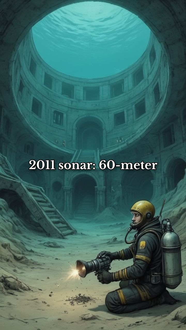 2011 sonar: 60-meter disc on Baltic floor with ramps and corridors. Divers’ gear failed at 200m—lights exploded,