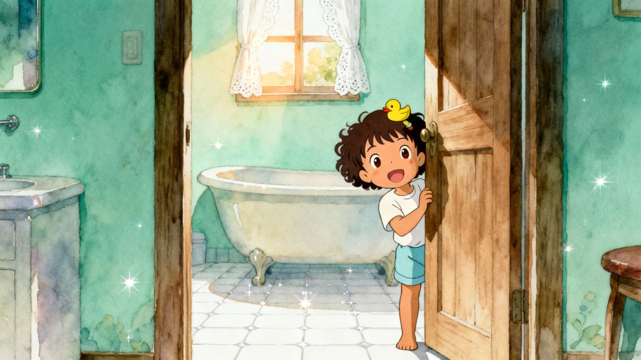 Água quentinha vai cair. Banho é bom, vamos sorrir. Banho,