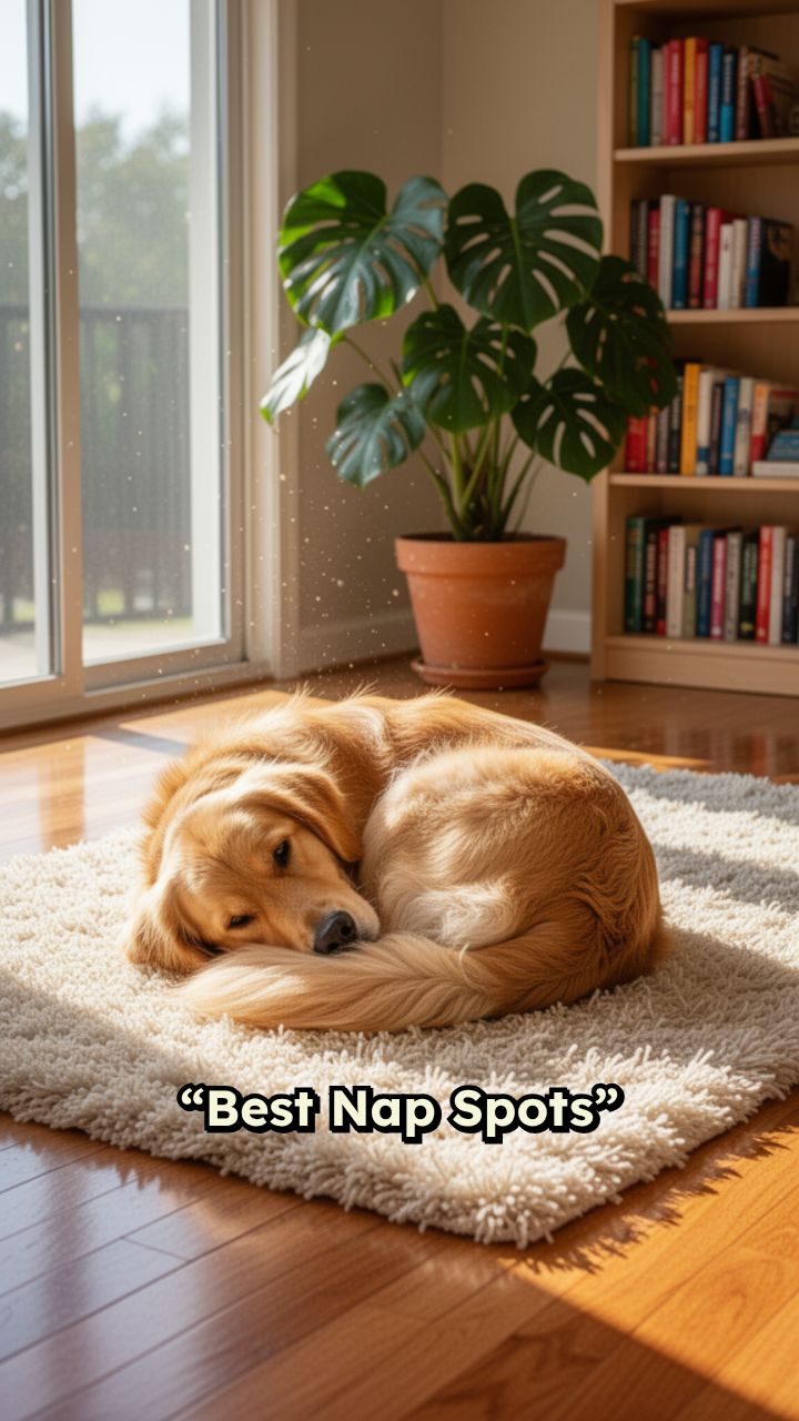 bed, basket). Add funny captions like “10/10 would nap again.”
