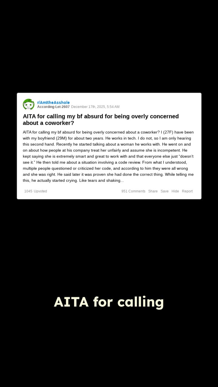 AITA for calling my bf absurd for being overly concerned about a coworker? I,