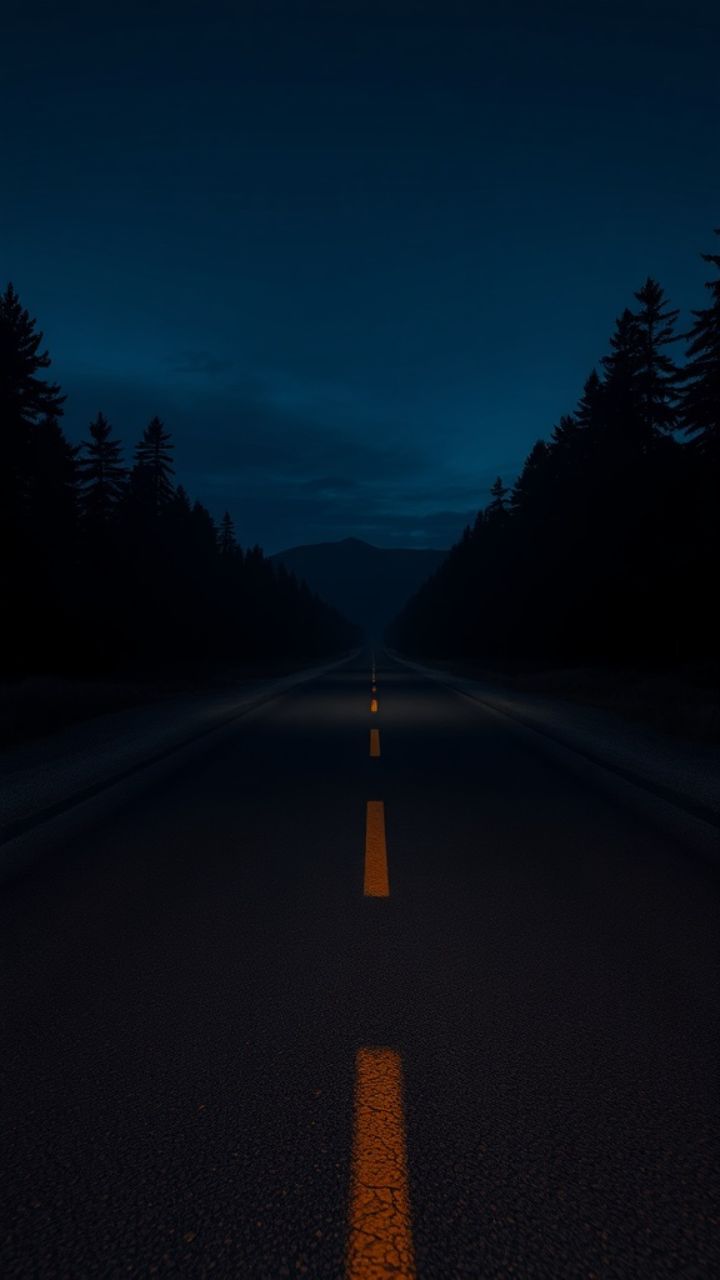 The asphalt cracked and swallowed the light. Gravel in the dust lead into