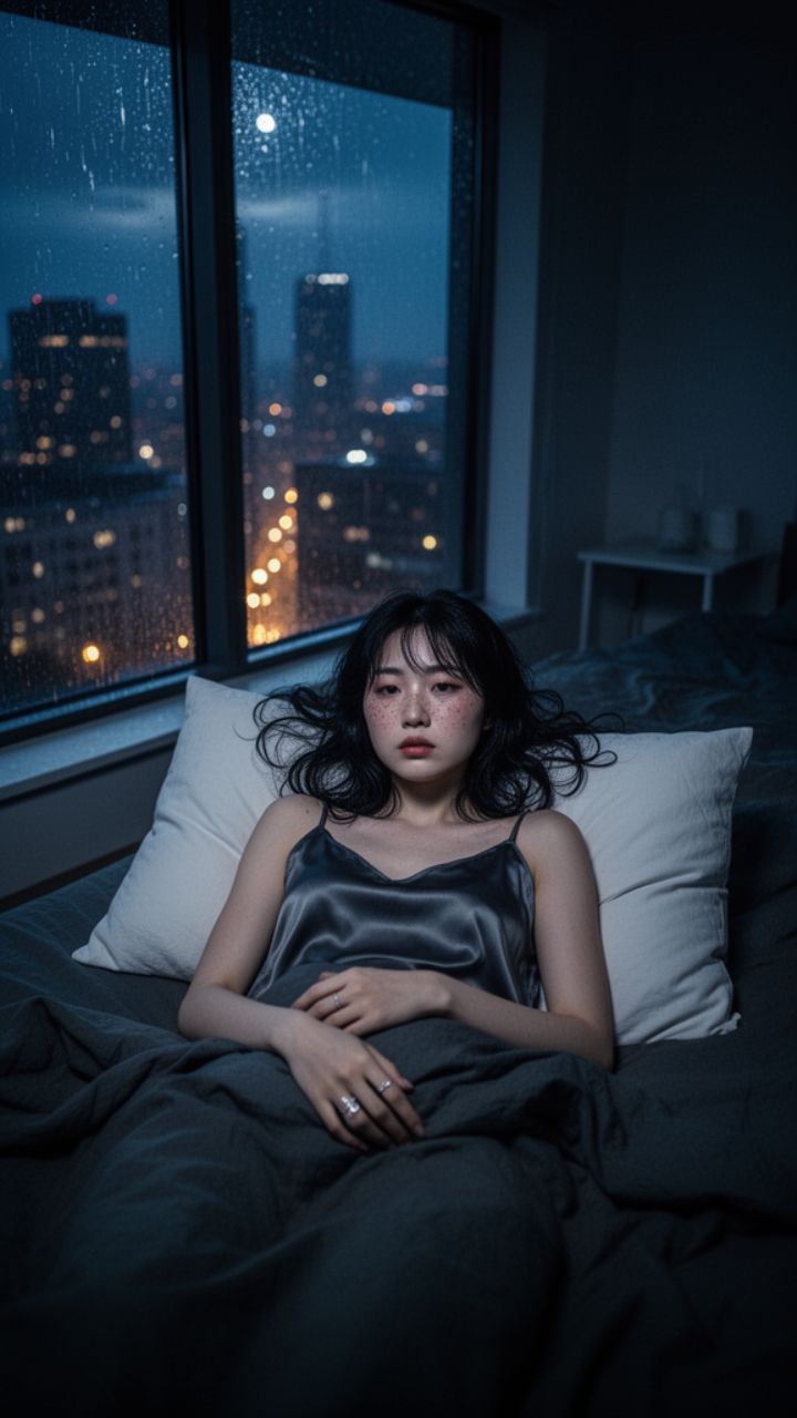 Lying in a blanket of darkness, shadows creep across the ceiling.