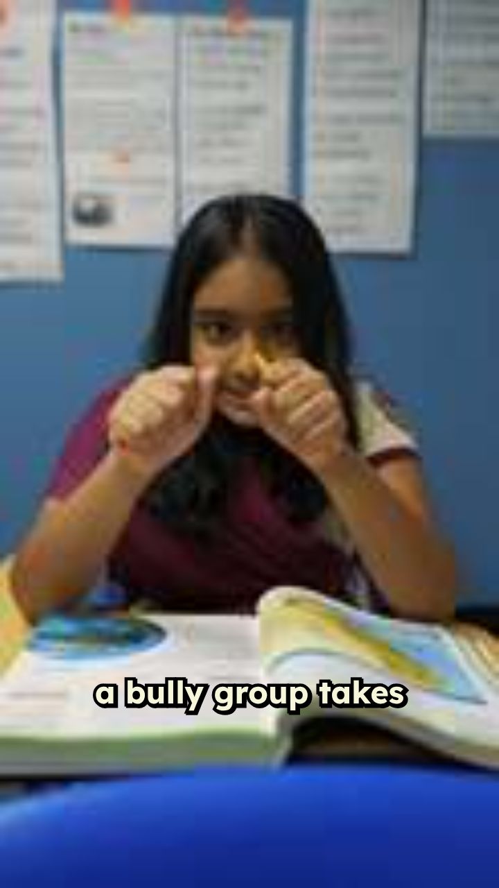 a bully group takes a ball from a little boy and punches his sister and the blue guy gets up