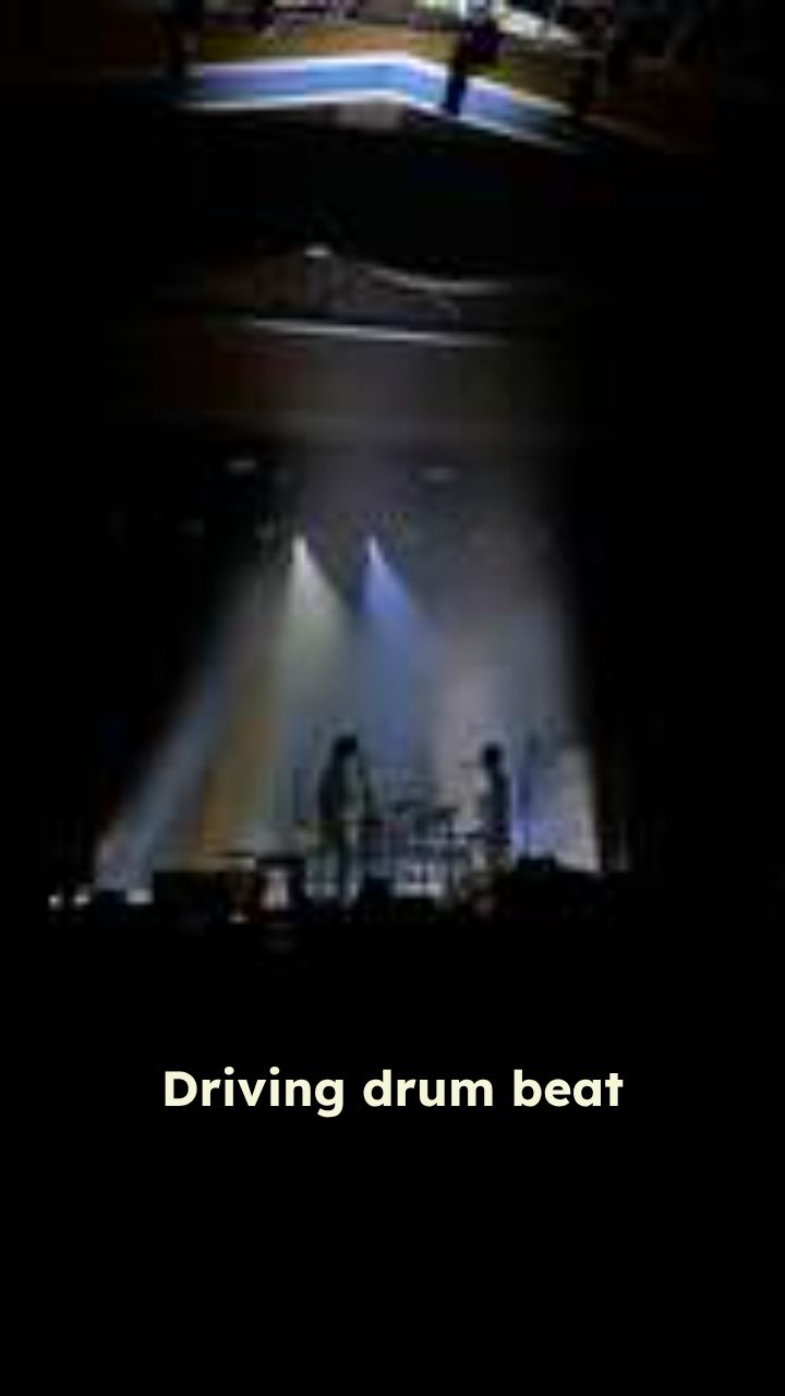 Driving drum beat and a memorable electric guitar riff kick in (Yeah!)