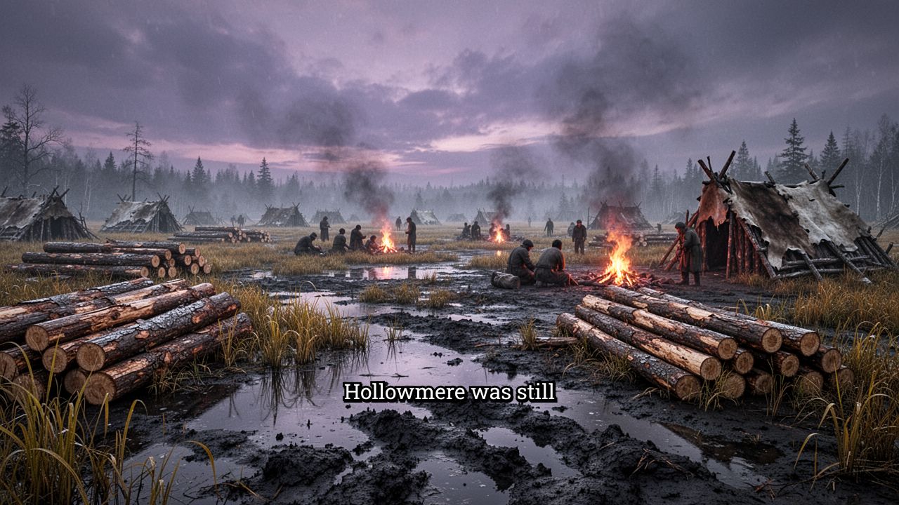 vision of a fenced marsh and pale lantern-lit homes. The villagers worked timber,