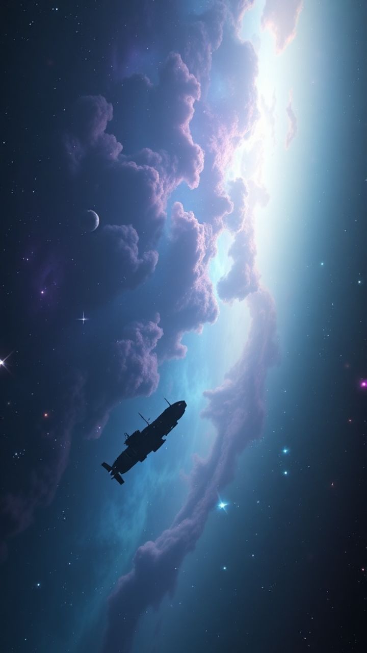 Phase sails bright in the cosmic storm we drift through night where the