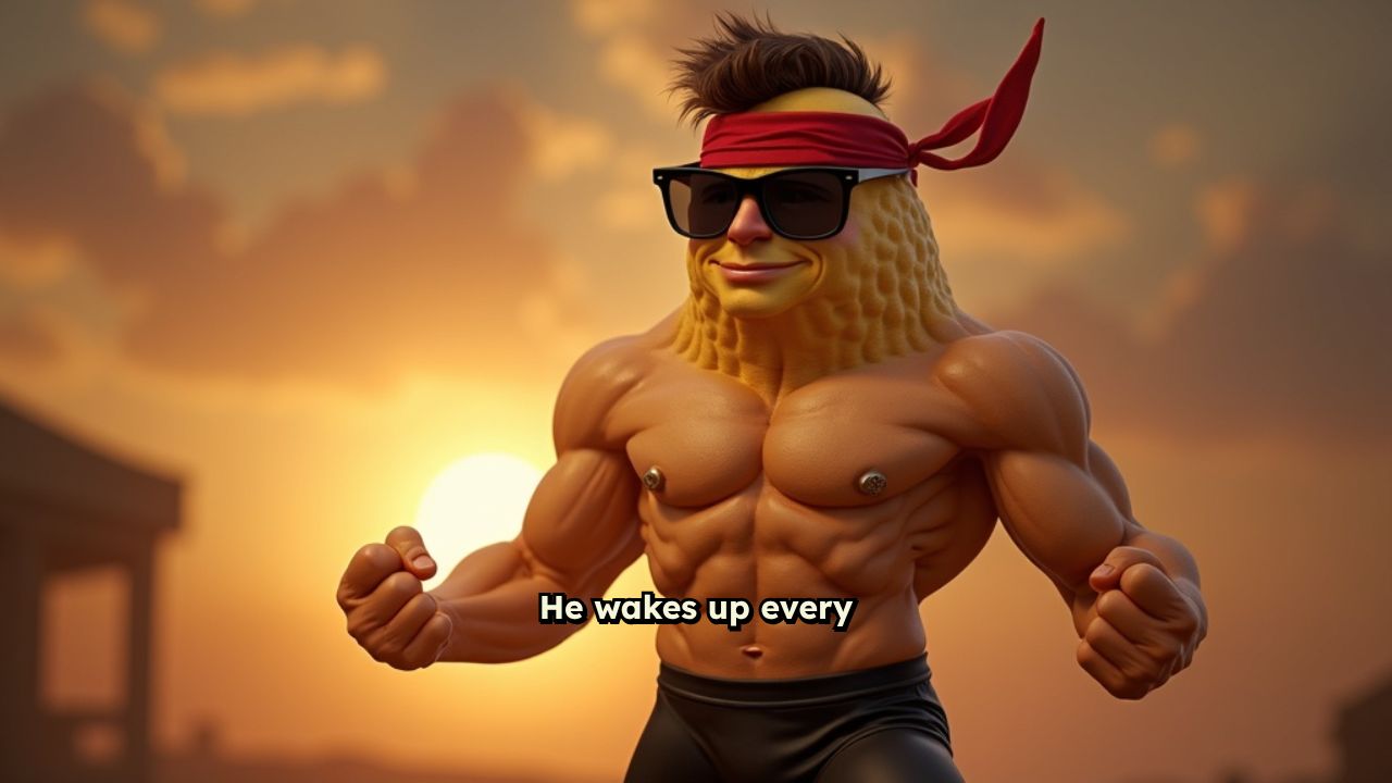just a peanut in gym shorts. While he flexes his shell under fluorescent lights,