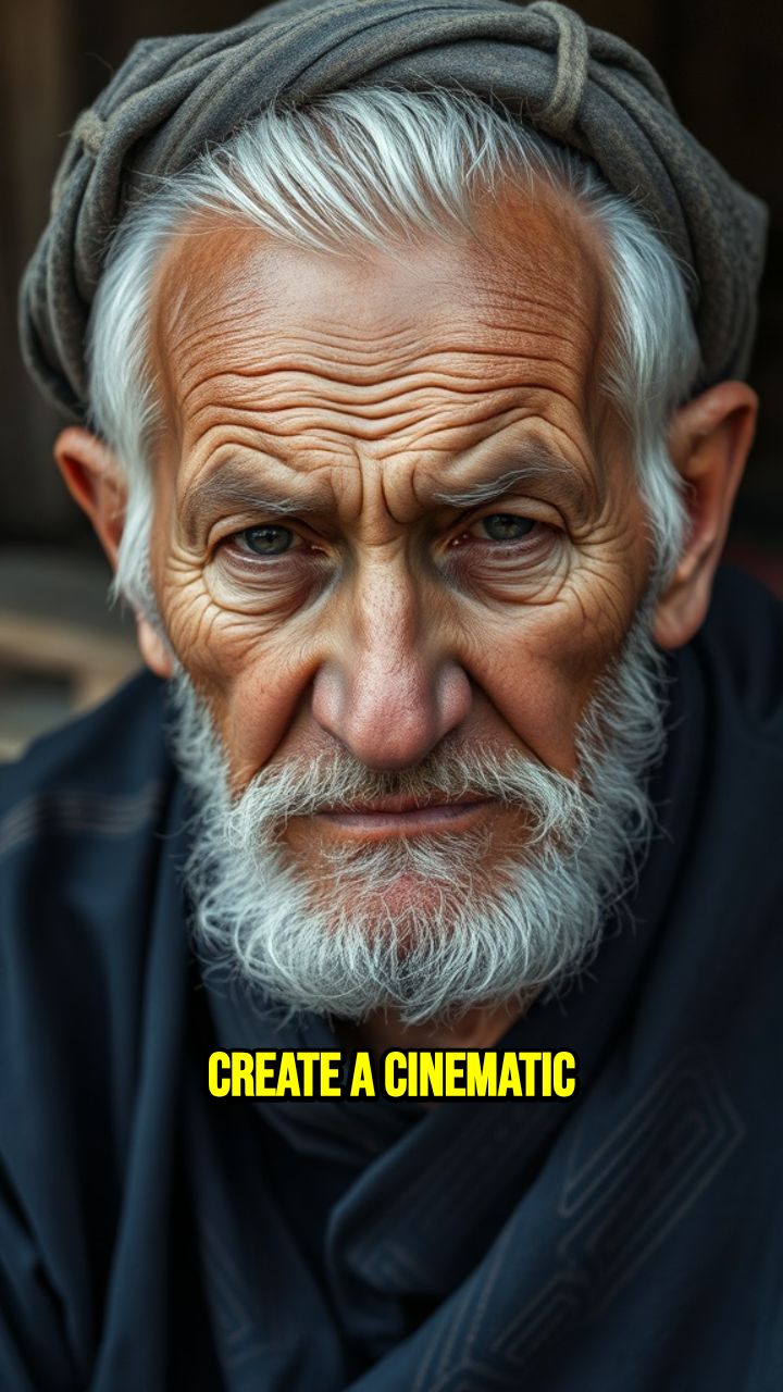 Create a cinematic short video of an old, grumpy Uzbek man sitting inside a