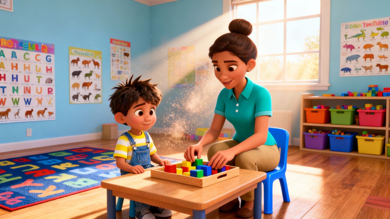 trabajar. El niño llora y empuja el material para evitar la actividad.