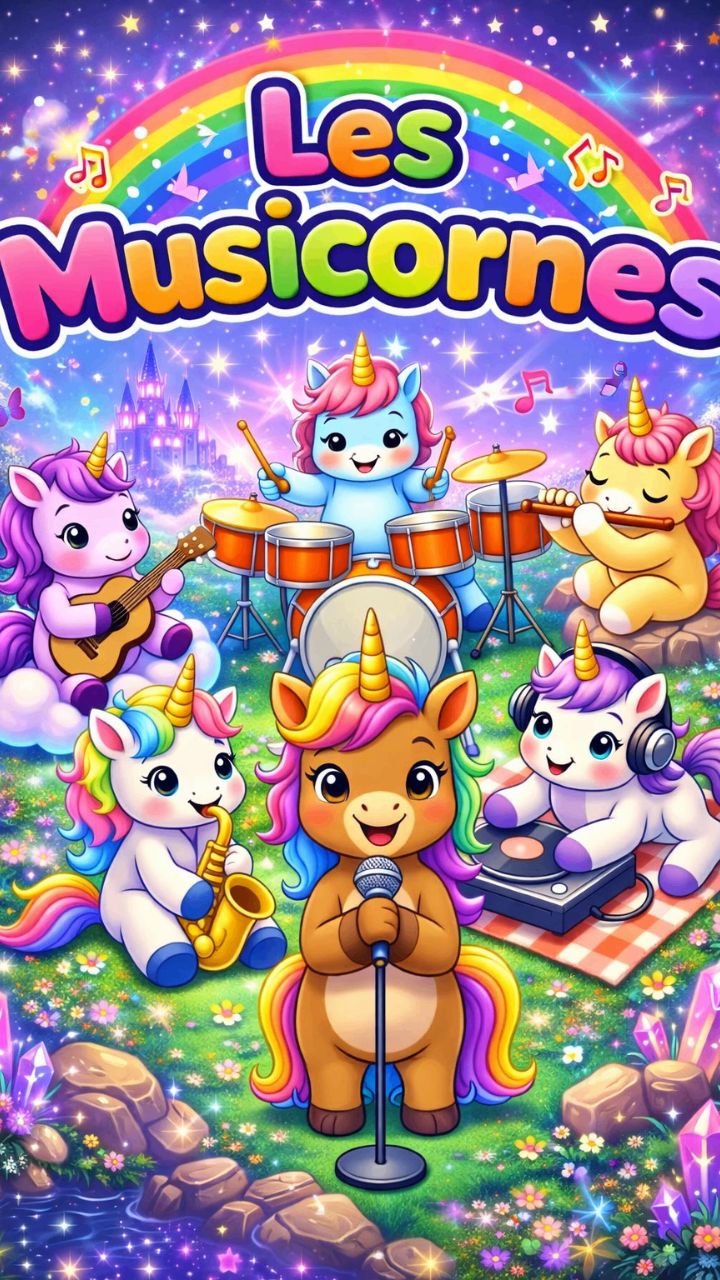 Concert de licornes sous un arc-en-ciel