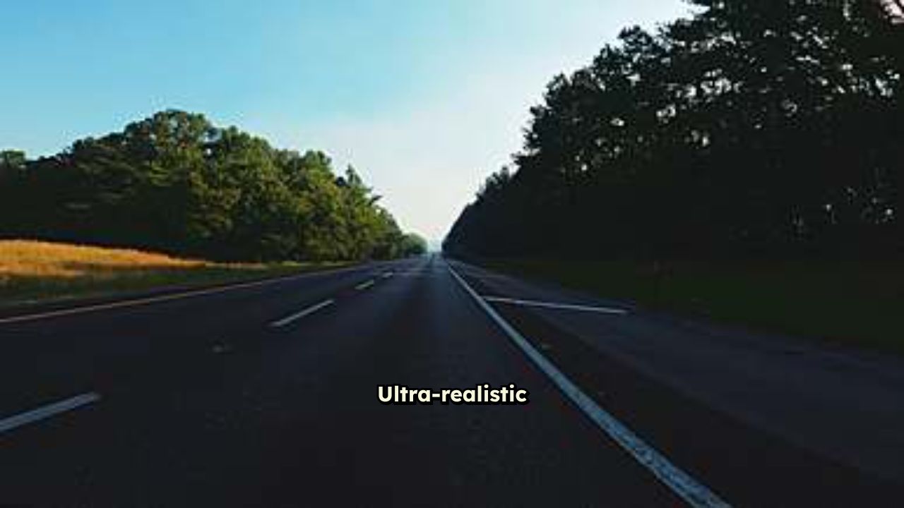 Ultra-realistic dashcam footage perspective from inside a moving vehicle on a three-lane