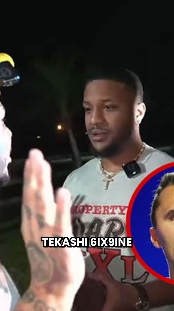 The car pulls up and fans start yelling for 6ix9ine. Sensing the fear, Tekashi turns to