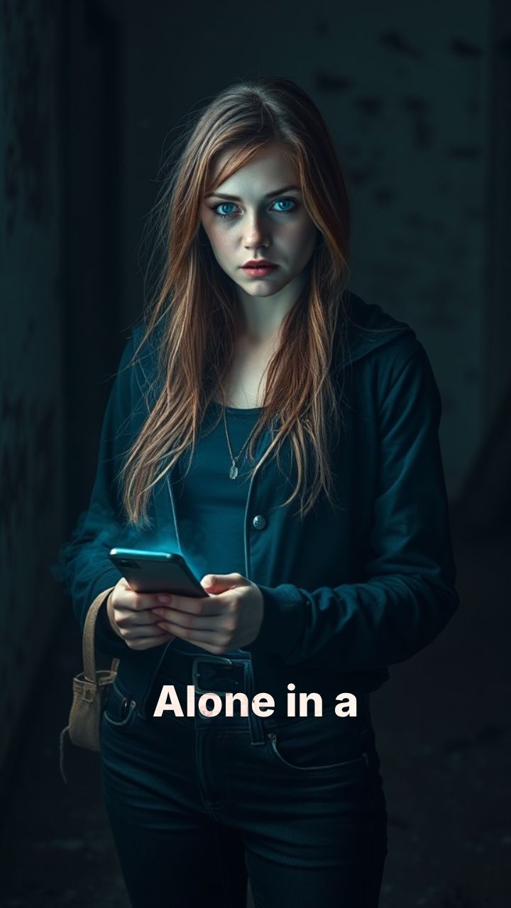 Her phone light sweeps, revealing a chilling reflection. A cracked gas