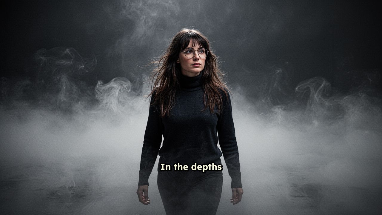 In the depths of the shadow, a lonely soul wanders through the silent fog.