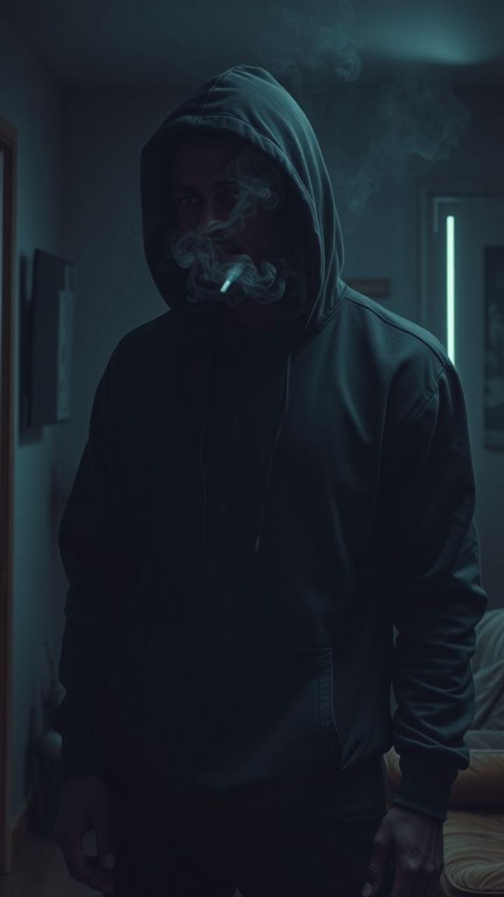Müdigkeit und latenter Schuld. Ein Joint liegt schon griffbereit auf dem Couchtisch.